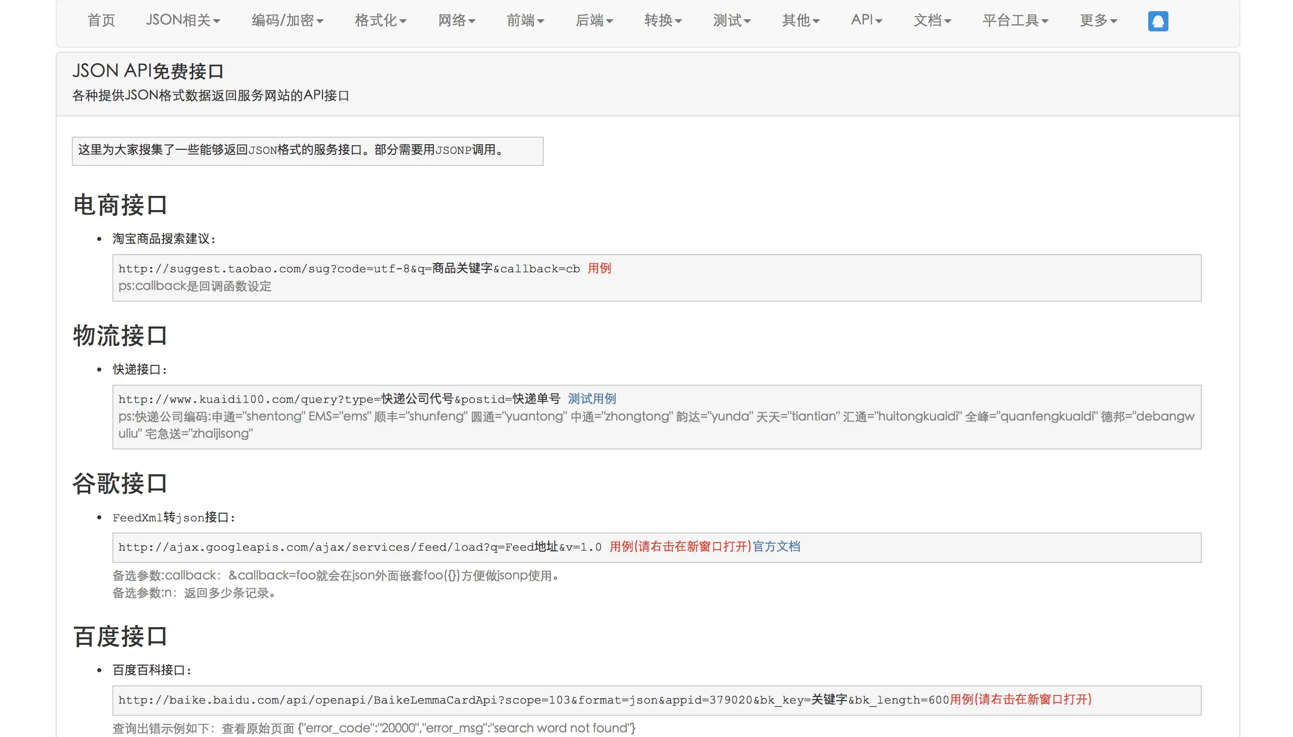 我们先上网去找一下可以实现jsonp的网站接口: