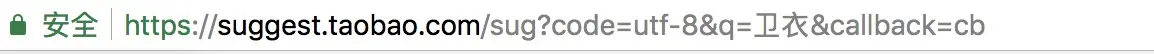 var url = 'http://suggest.taobao.com/sug?code=utf-8&q=' + '卫衣' +'&callback=cb';