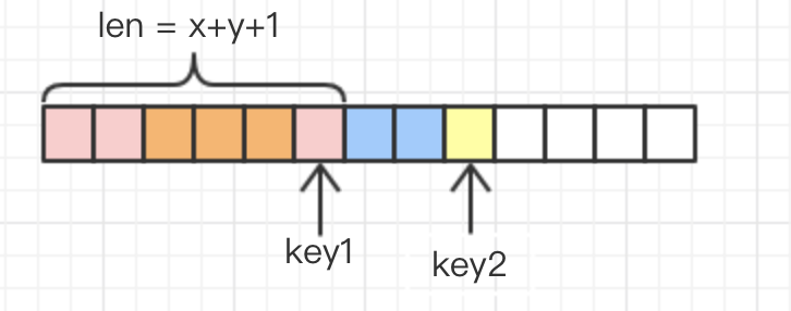 合并以后的样子如下图,len为合并后的数组的在key2前的长度,len>=x+1+y: