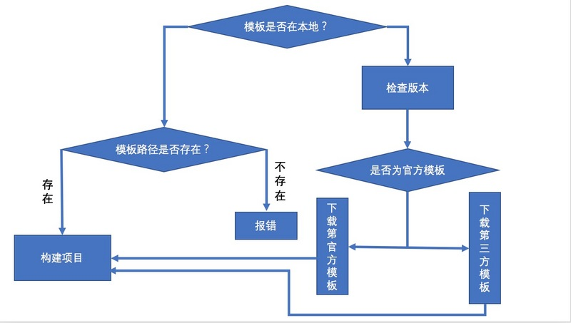 - vue-cli会先判断你的模板在远程github仓库上还是在你的本地某个文件里面,若是本地文件夹则会立即跳到第3步,反之则走第2步。