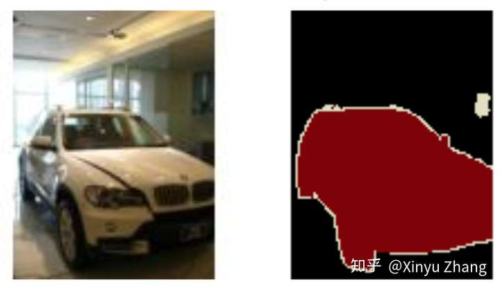 在检测中我们用框包含物体的主体区域,这个主体有些情况下可能只是物体的一部分,也可能互相重叠, 而分割中我们准确的描出属于物体的全部像素。
