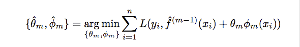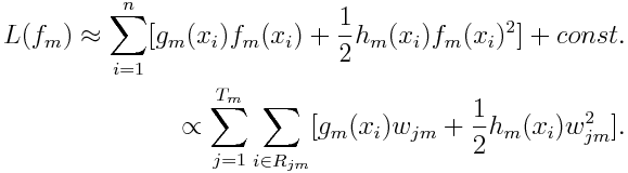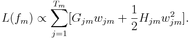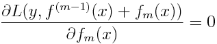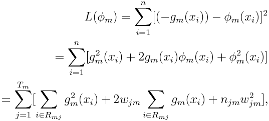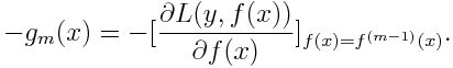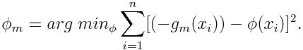 我们将已知输入数据从 (xi,yi) 转变到了 (xi,-gm(xi)),我们现在要用函数 去拟合 (xi,-gm(xi)),并且评判标准如下: