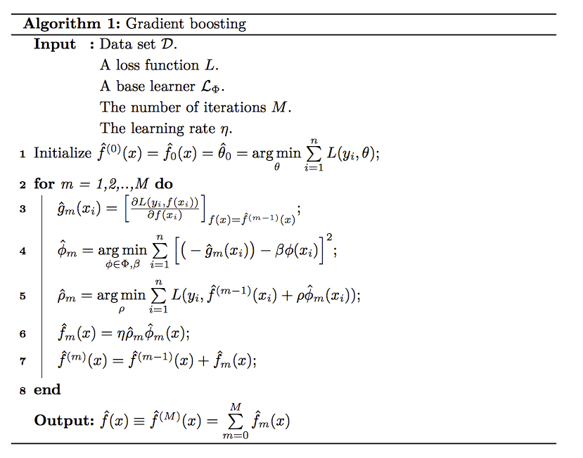 以上内容是我们在文章 Adaboost 原理中讲的,我们本文来看看其实怎么符合上文GBM原理的.GBM的算法原理如下: