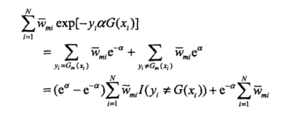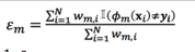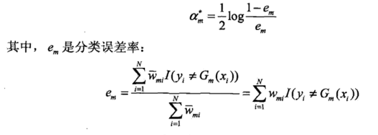 第一个问题:学习误差率e的计算,第m个弱分类器的误差率为训练集上的加权错误率: