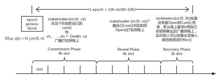 - 整个epoch被分为了三个阶段:Commitment Phase, Revel Phase, Recovery Phase,分别占比4:4:2