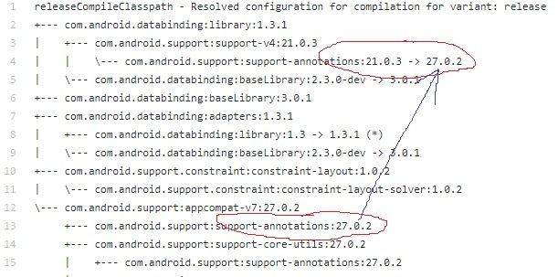| | \ — — com.android.support:support-annotations:21.0.3 -> 27.0.2