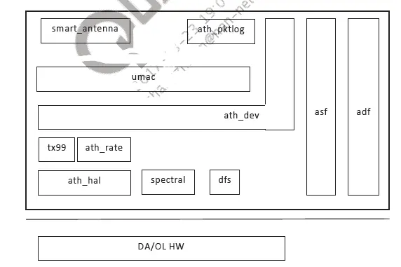 这是部分wifi驱动的内容,完整的架构包含以下内容: asf : Atheros Service Framework (ASF) qdf : Qualcomm Driver Framework lmac : LMAC (Lower Media Access Controller) umac : UMAC (Upper Media Access Controller) wow : The Wake on Wireless