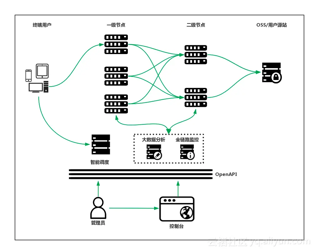 阿里云CDN有一级节点、二级节点的缓存,二级节点的作用是