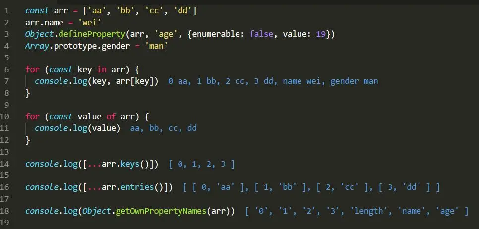 使用 5 种方式遍历该数组,根据上图,可看到区别如下: