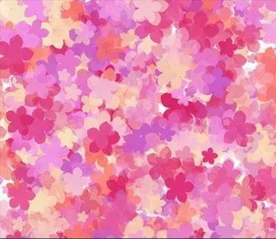 - 花朵随机出现在画面上,有不同的大小、颜色与透明度
