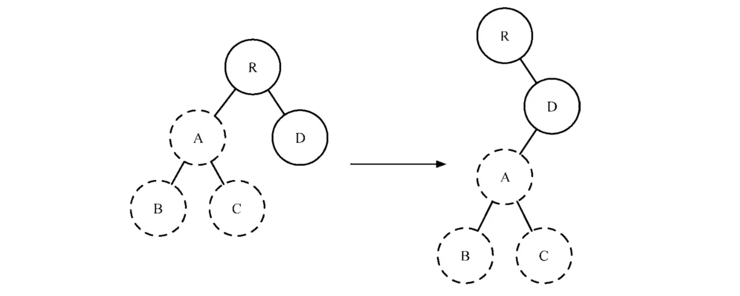 - 当完成新集合所有节点中的差异对比后,对旧集合进行遍历,判读旧集合中是否存在新集合中不存在的节点,此时发现D节点符合判断,执行删除D节点的操作,diff操作完成。