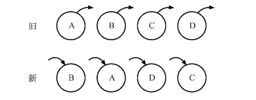 - nextIndex = 1,lastIndex = 1,从新集合中获取E,在旧集合中没有发现相同节点E,nextIndex++进入下一个节点判断。