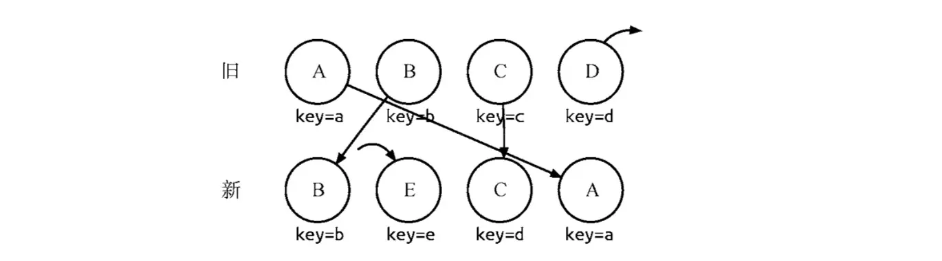 ==那么,除了有可复用节点,新集合当有新插入节点,旧集合有需要删除的节点呢?==