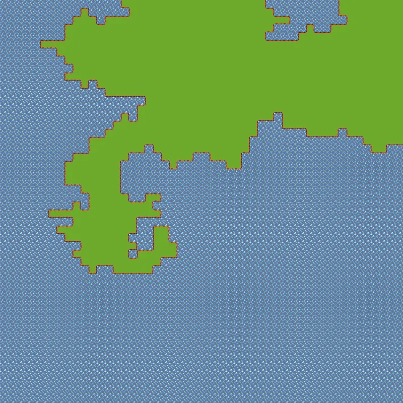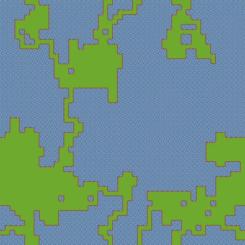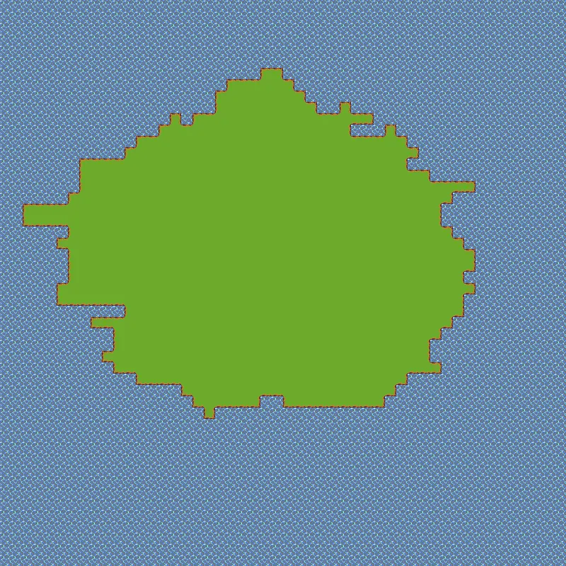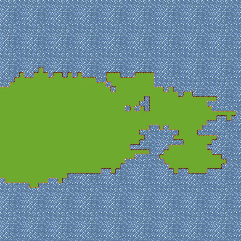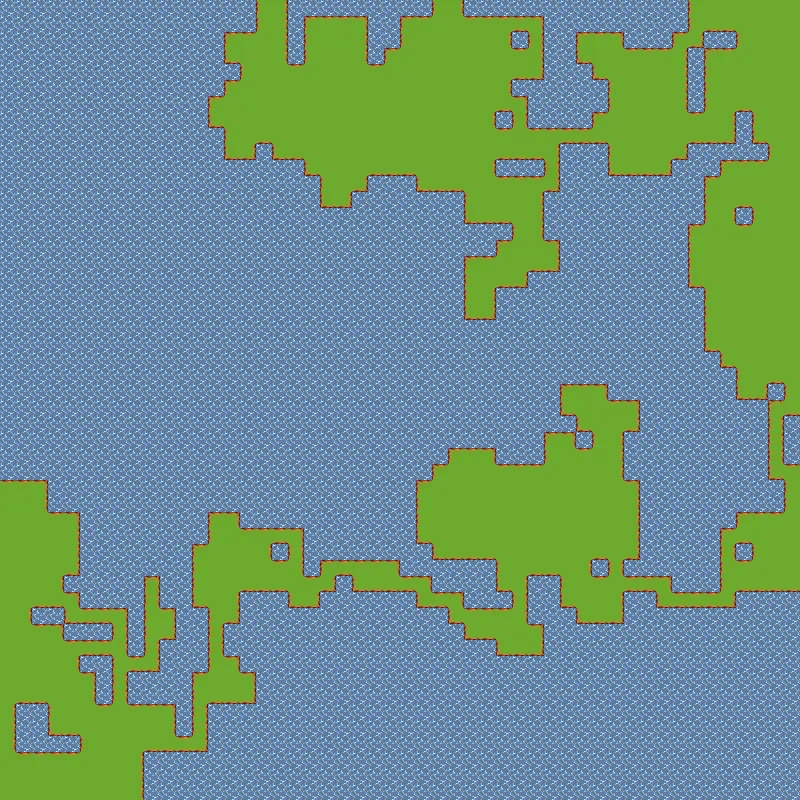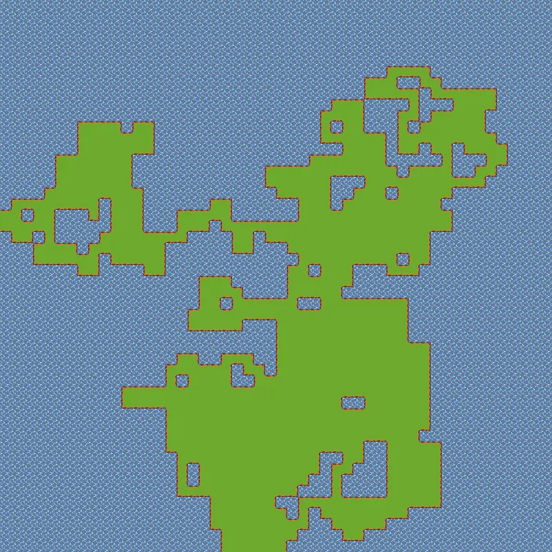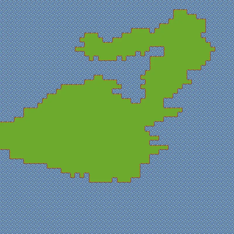 显而易见,跟之前 DFS 生成出来的奇形怪状相比,这种算法生成的连通区域更像是一块 Mainland,而前者则更像是一个洼地沼泽或者丛林。