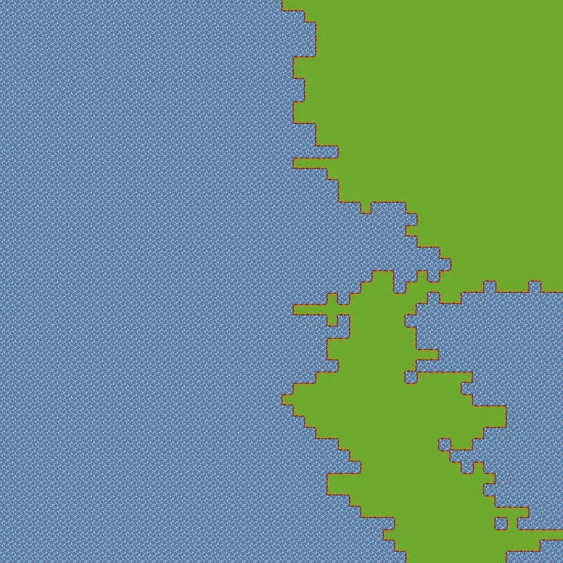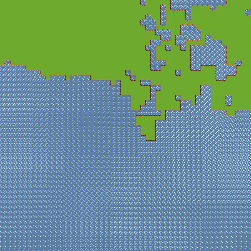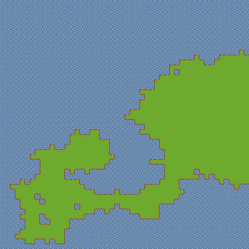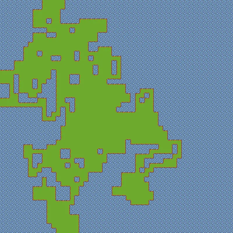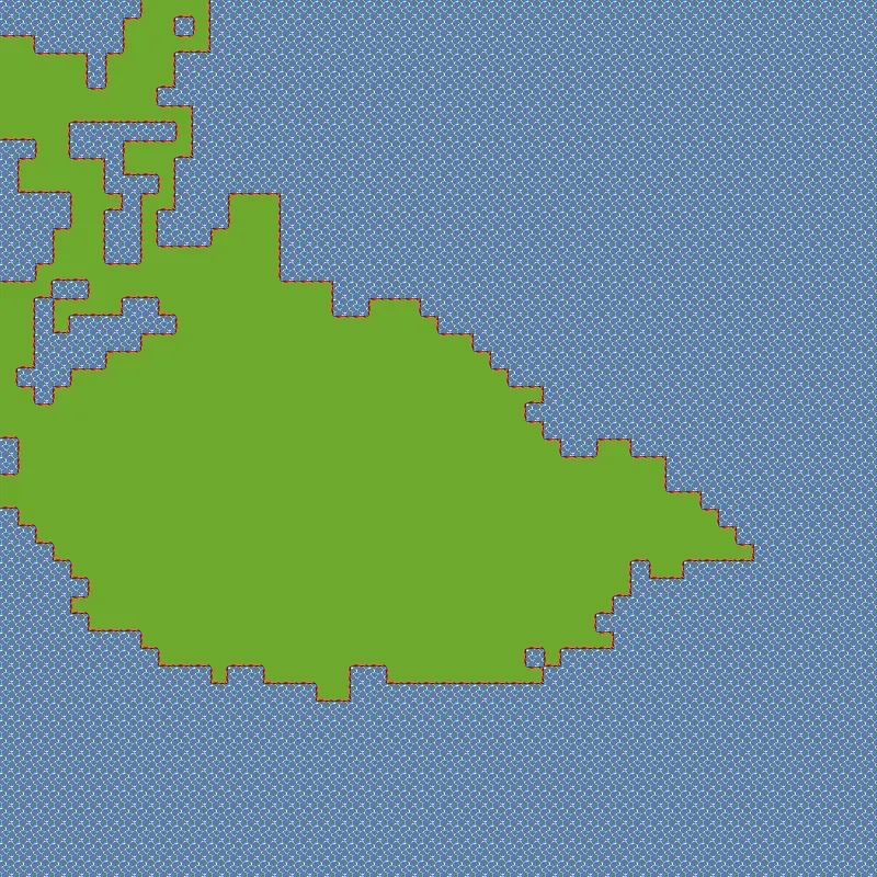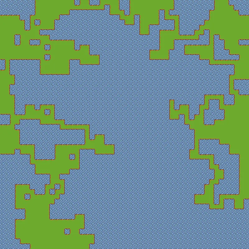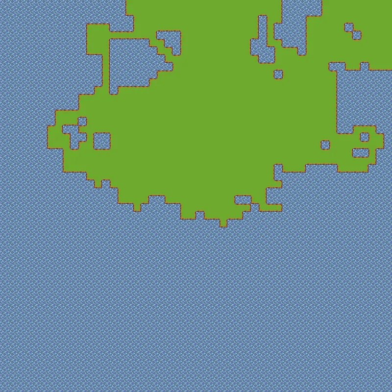 显而易见,跟之前 DFS 生成出来的奇形怪状相比,这种算法生成的连通区域更像是一块 Mainland,而前者则更像是一个洼地沼泽或者丛林。