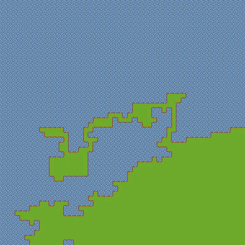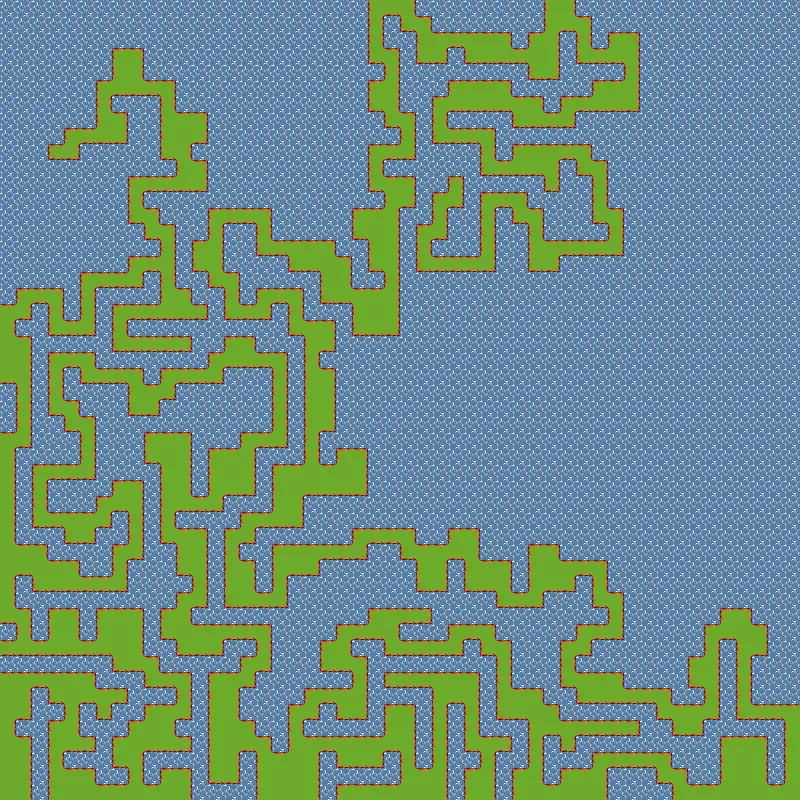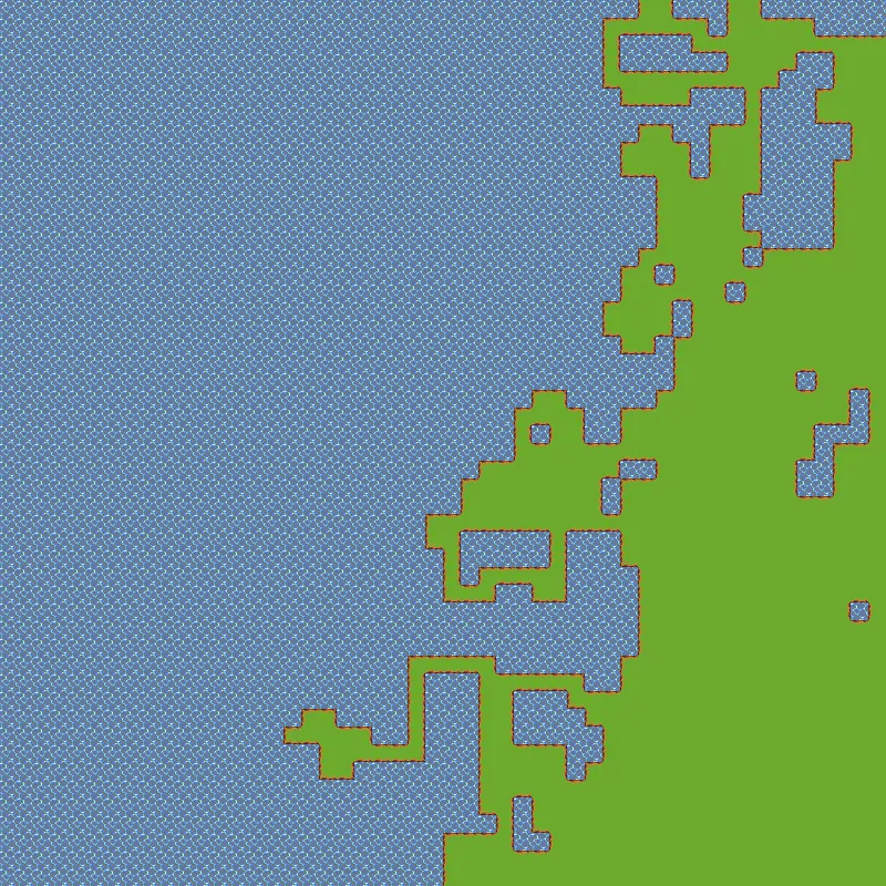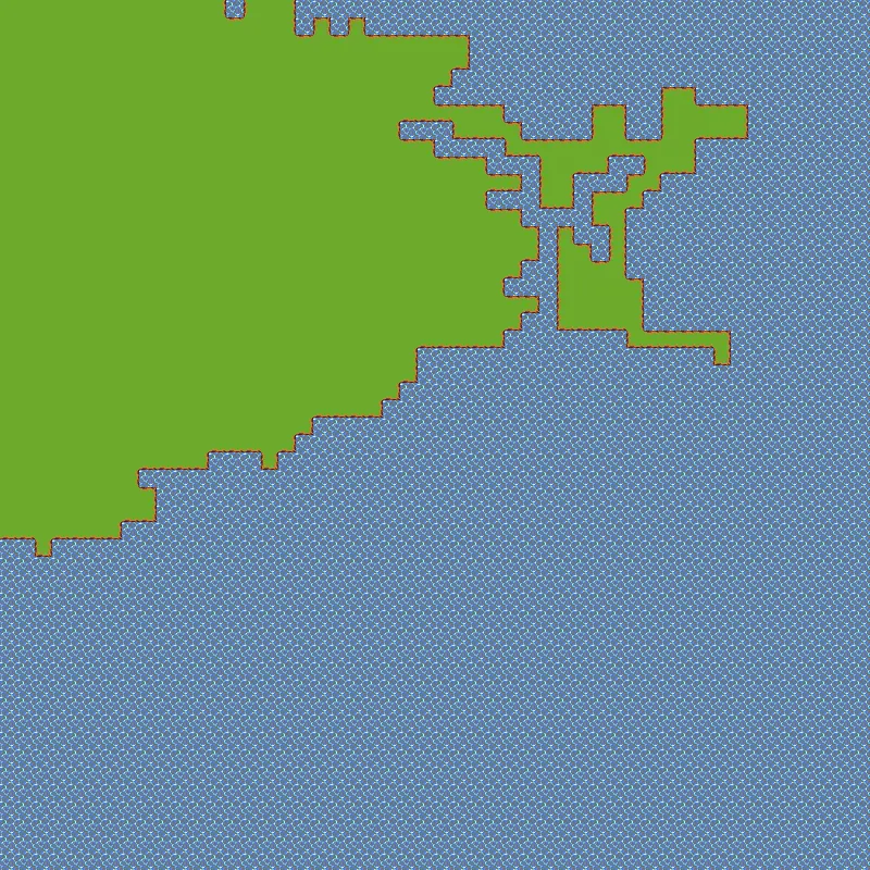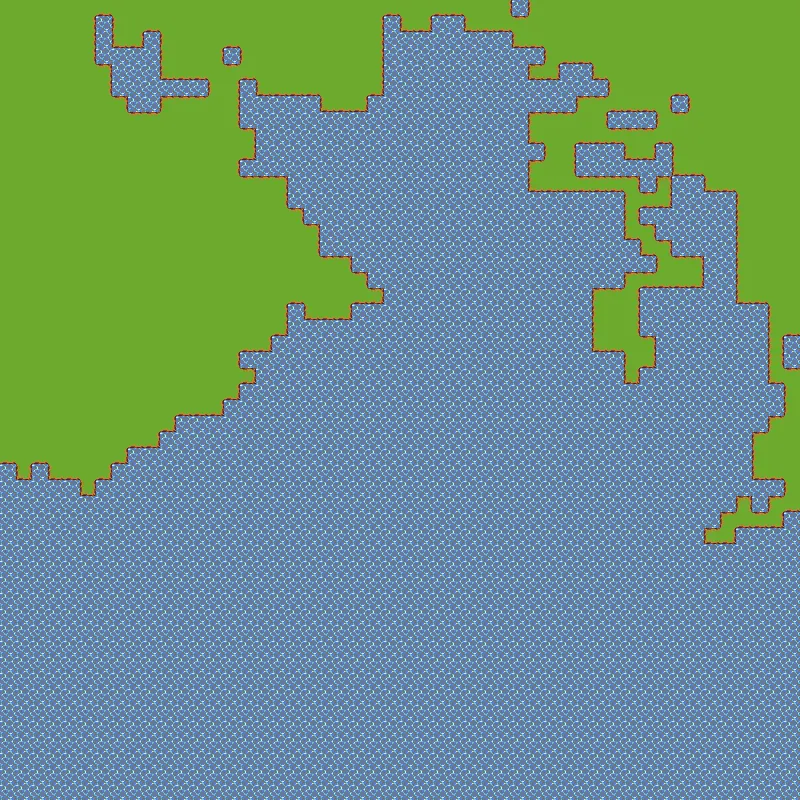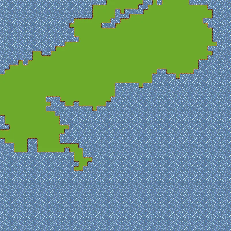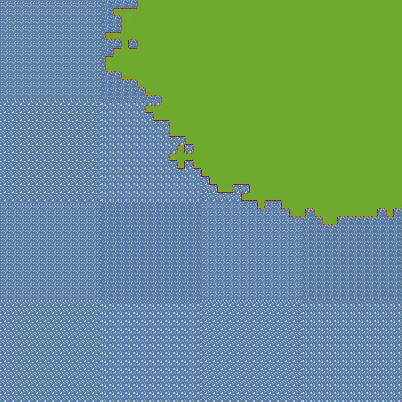 显而易见,跟之前 DFS 生成出来的奇形怪状相比,这种算法生成的连通区域更像是一块 Mainland,而前者则更像是一个洼地沼泽或者丛林。