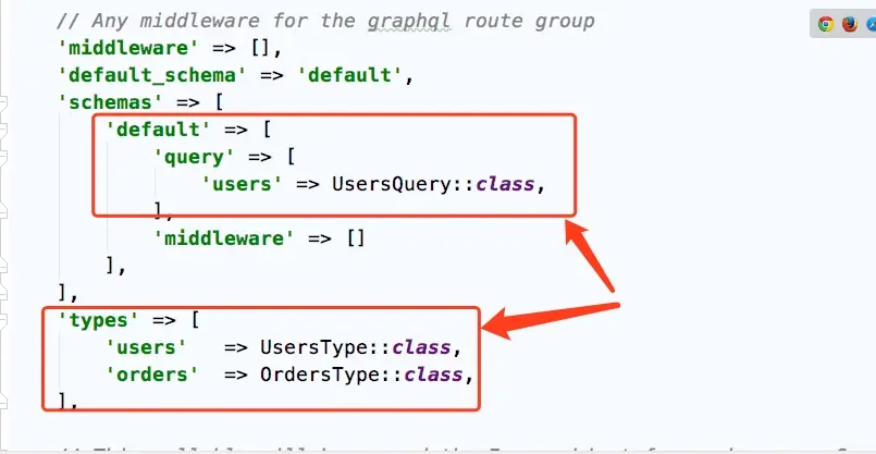将写好的 UsersType 和 UsersQuery 注册到 GraphGL 配置文件中。