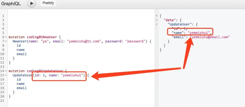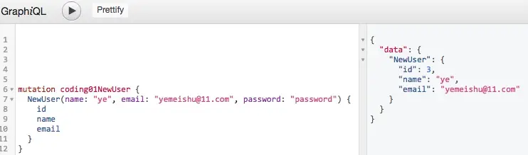 如上图,创建两个 mutation,可以选择任意一个看运行效果。