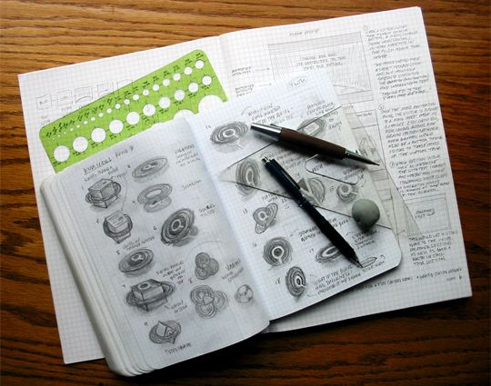 纸张:选择合适的纸张,要看你个人的喜好,比如用什么样的钢笔、铅笔、或者水性笔。总体来说我喜欢用更顺滑的纸张,并且有一定的厚度不会让背面太突兀。 我有时候也会用图标、点网格纸,如果我是做网页或者UI相关的工作,它们可以提供更精细的结构,一般情况下用白纸都可以。