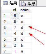 (3)select top(3) with ties * from table1 order by name desc:结果如下: