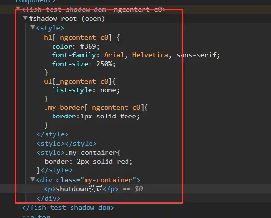 - encapsulation:ViewEncapsulation.Emulated实际上是模拟的shadowDom的模式,是模拟的,所以没有真正的shadowDom模式渲染好 这是默认配置,保证当前的样式仅在自身组件使用