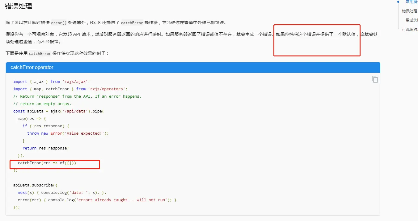 retry(count:number) 在catchError之前调用这个方法,重新调用请求错误的调用数列,如果是http请求,就重新发起那个 HTTP 请求