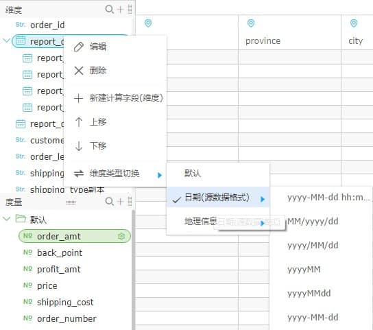 9.维度类型切换:默认类型、日期以及地理维度的切换