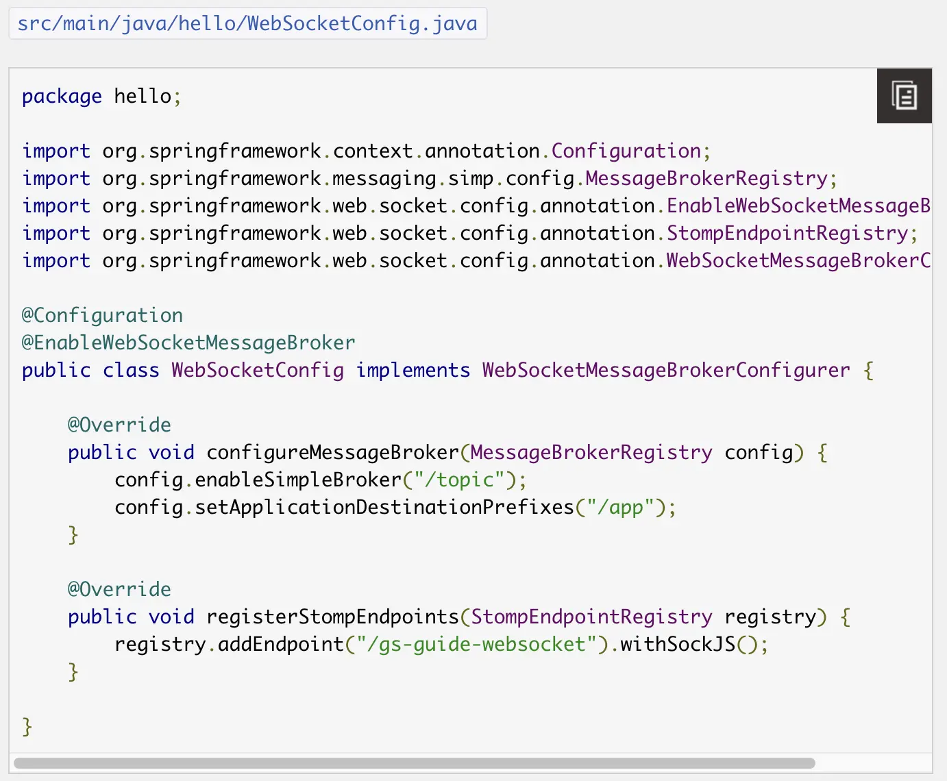 '/gs-guide-webscoket' 用于建立长连接