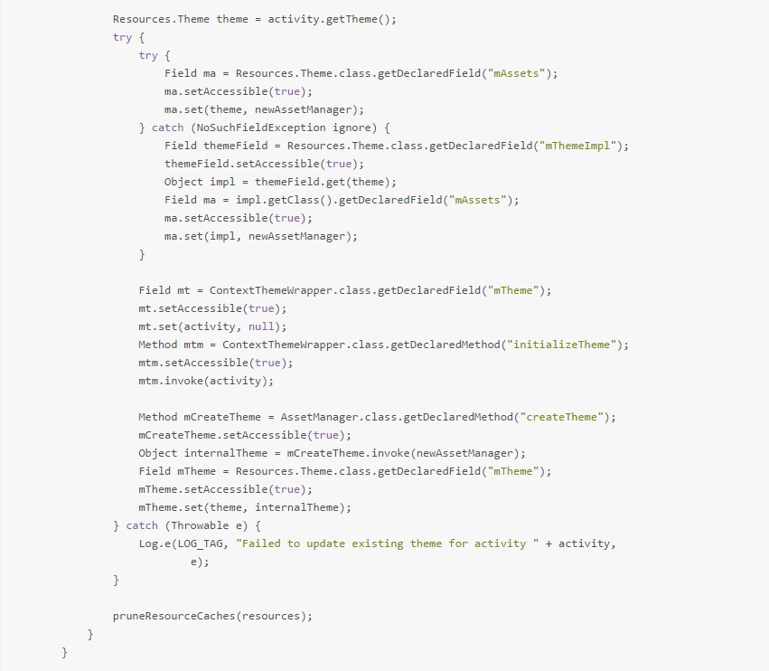2. 找到引用了原AssetManager对象的字段并替换为新的引用。