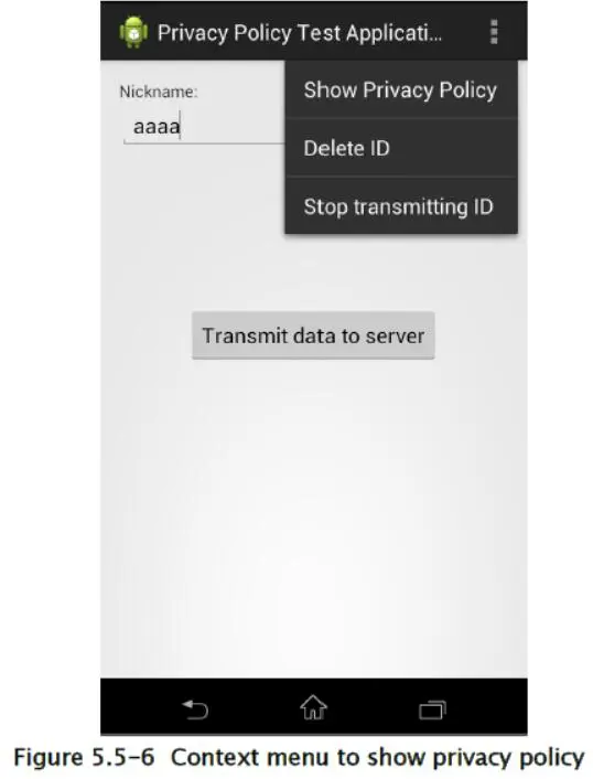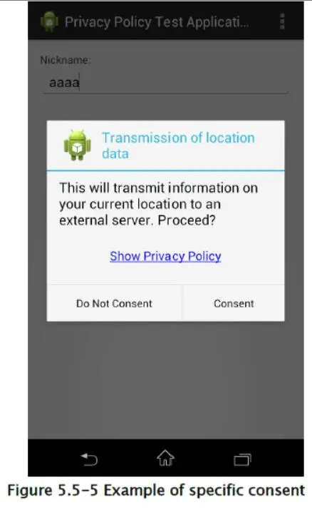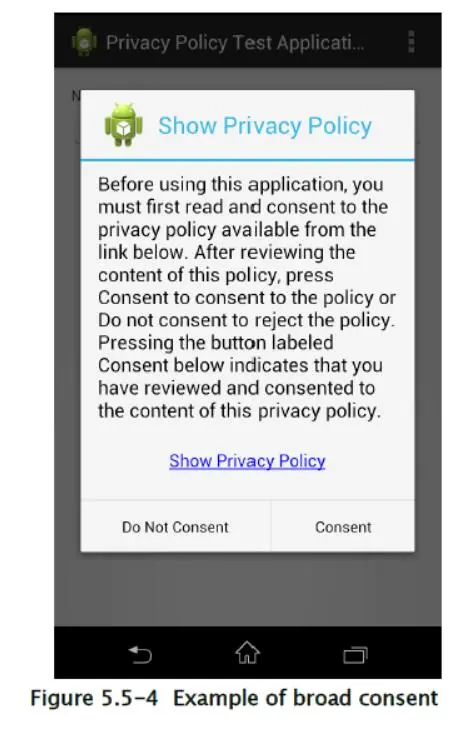 一般来说,Android 应用市场将提供应用隐私策略的链接,供用户在选择安装相应的应用之前进行复查。 除了支持此功能之外,应用还需要提供一些方法,用户在设备上安装应用后,可以查看应用隐私策略。 特别重要的是提供一些方法,用户可以轻易复查应用隐私政策。在同意的情况下,将用户数据传输到外部服务器来协助用户作出适当决定。