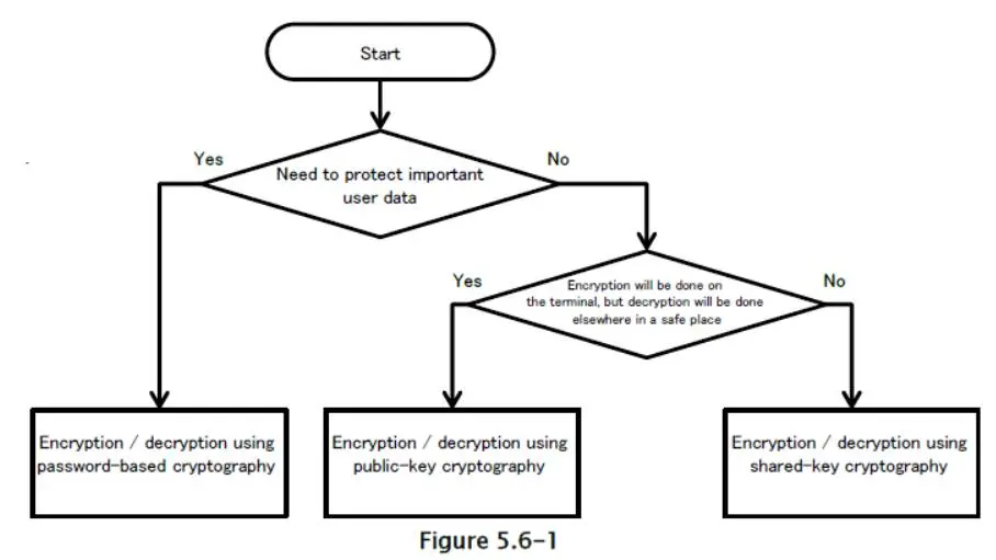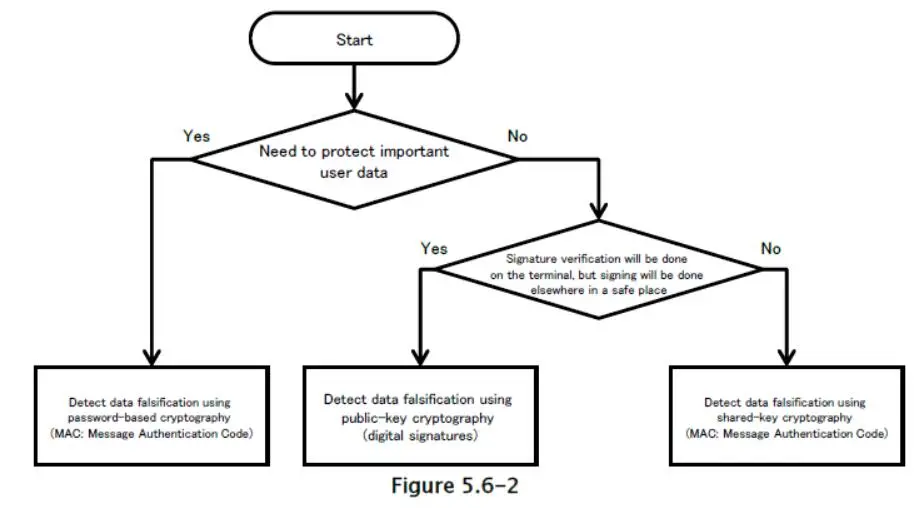 针对特定用途和条件开发了各种加密方法,包括加密和解密数据(来确保机密性)和检测数据伪造(来确保完整性)等用例。 以下是示例代码,根据每种技术的目的分为三大类加密技术。 在每种情况下,应该能够根据密码技术的特点,选择适当的加密方法和密钥类型。 对于需要更详细考虑的情况,请参见章节“5.6.3.1 选择加密方法”。