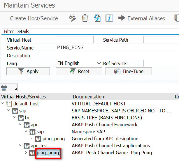 使用ABAP Push Channel(APC)开发的乒乓球游戏,可双打 已注销 2018-04-05 320 阅读1分钟 url: https://:/sap/bc/apc_test/ping_pong/game 或者事务码SICF, 输入ping_pong, 按F8: 选中搜索结果,点右键选择Test,即可打开url。 两个玩家分别通过执行report RS_APC_PING_PONG加入游戏。通过Up和Down上下移动球拍。 要获取更多Jerry的原创技术文章,请关注公众号"汪子熙"或者扫描下面二维码: