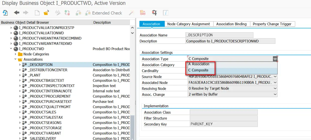 只有两种:association或者composition。Composition的含义同CRM里的aggregation,而association的含义同UI5和CRM中的association一致。