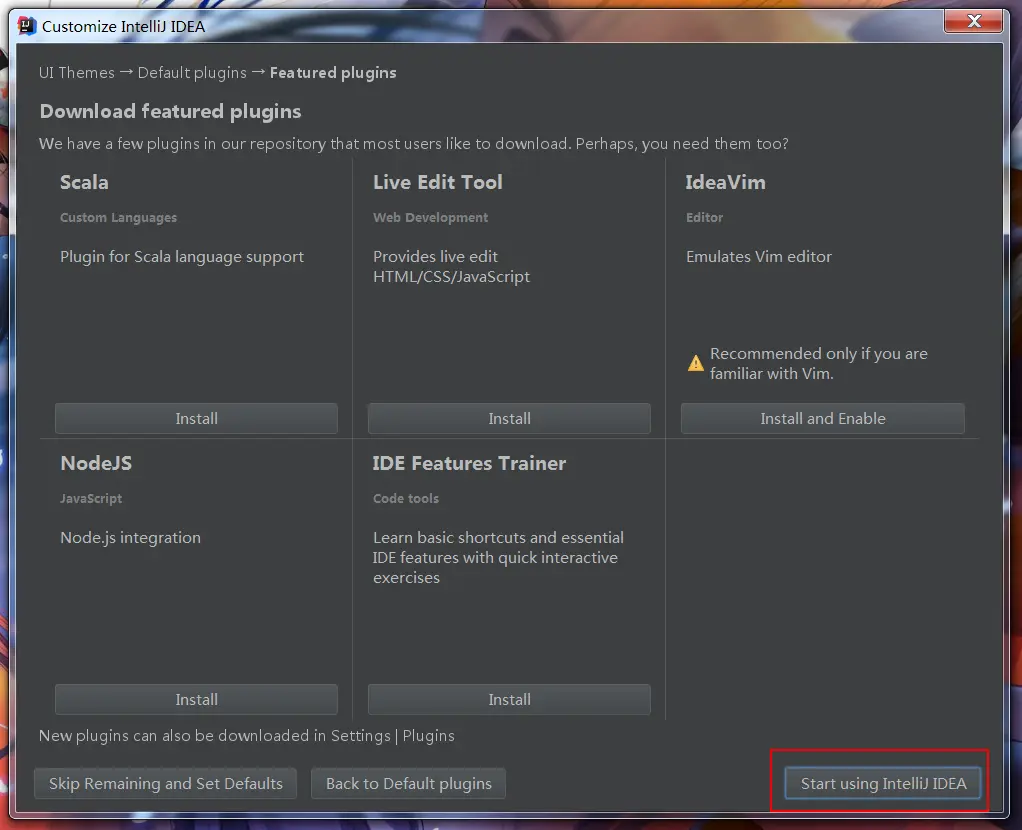 下一步也是直接跳过,接下来就可以使用 IDEA