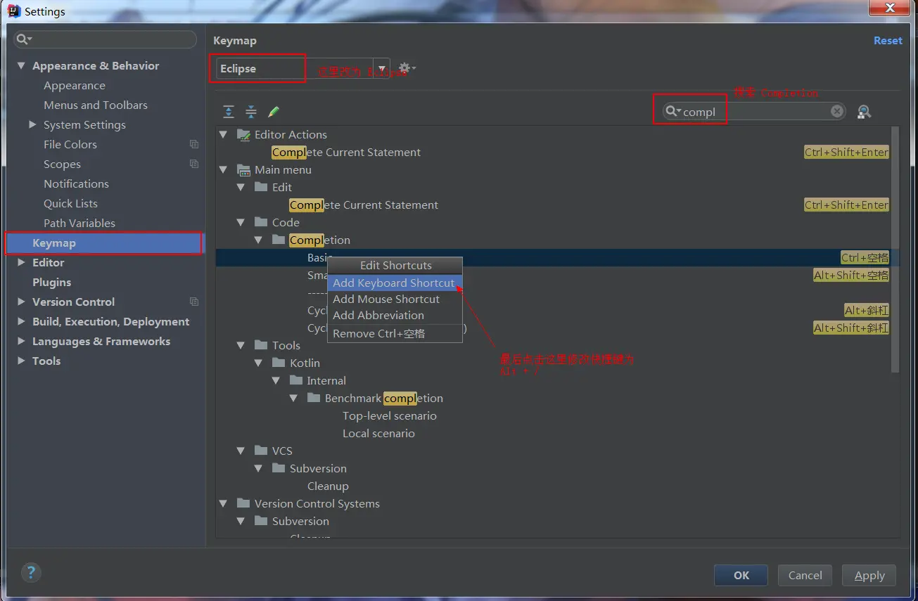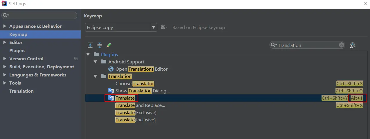 Setting -> Keymap -> 搜索 Translation ->单击 Translation 设置新的快捷键