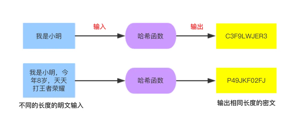 采用某种散列函数,输入不同长度的明文,得到相同的长度的密文,明文的微小变化都能引起密文的巨大变化。其实哈希散列算法不算是真正的加密,而是生成对应明文的指纹信息,用来校验数据的完整性。