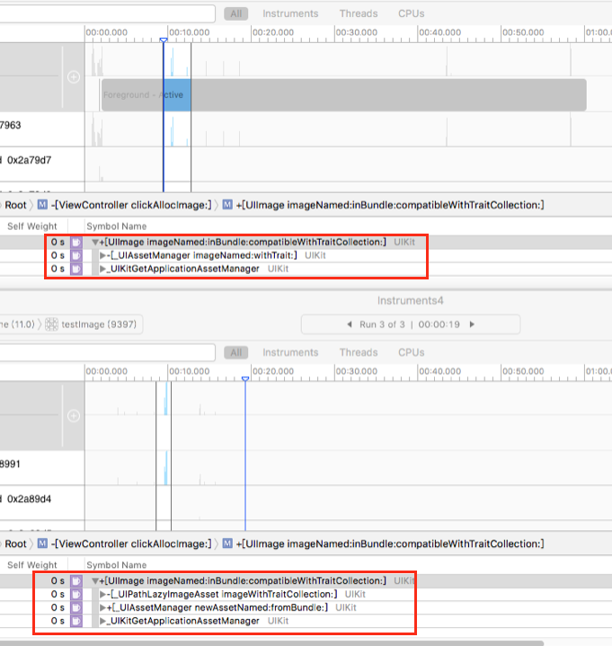 在使用 Time Profiler 调试 "-[UIImage imageNamed:]" 时候,发现它实际是调用 "-[UIImage imageNamed:inBundle:compatibleWithTraitCollection:]" 的,这时候萌发了一个想法是会不会根据指定 Bundle 的范围会加快加载图片的速度(理由是文件夹小了,减少索引次数)。