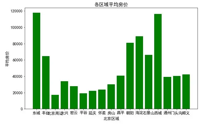 简单分析一下各大区的每平米二手房单价和各大区二手房数量,数据仅为部分,博主没等数据全部爬取完,仅供参考。当然也可根据实际情况进行更复杂的数据分析和机器学习进行房价预测。