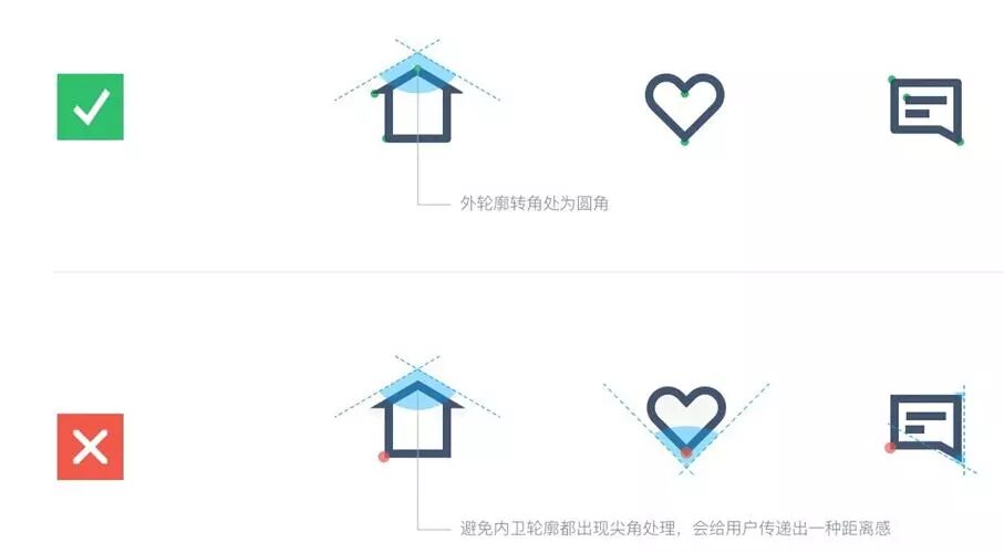 icon 边缘外圆内方(圆角为2px)。