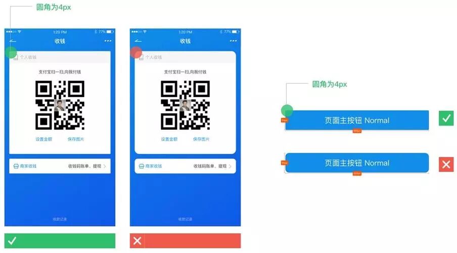 卡片样式为矩形(包括按钮圆角),圆角为4px。