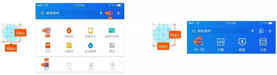 功能和宫格:48*48px