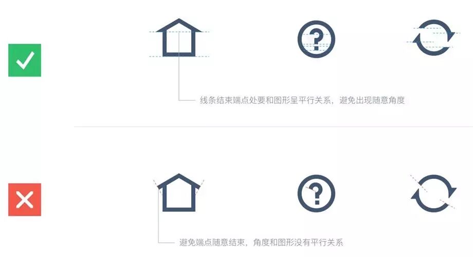 图形线条或块面结束处要和图标成平行关系。