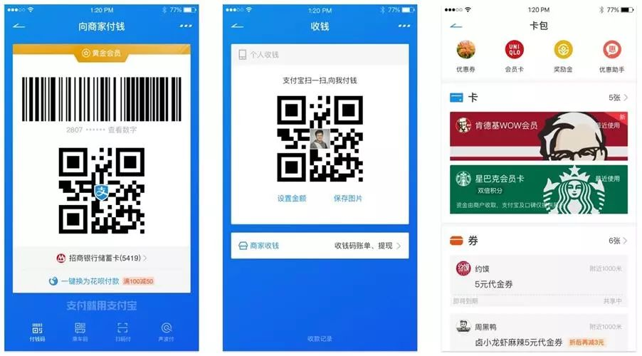 图案图形是支付宝品牌 DNA 的重要部分,通过几何图形(矩形、圆形、三角形)的组合,造型鲜明,可以传递出支付宝品牌的安全感、信赖感和专业感;基础的几何图形通过不同的灵活组合,可以创造出千变万化的造型感,符合想象力的品牌调性;30° 角度给人以速度感,图案图形通过转角位30°倍数的原则做视觉处理可以传递支付宝的便捷调性。通过以上描述打造出来的图案图形可以传递支付宝安全感、信赖感和专业感的品牌调性。