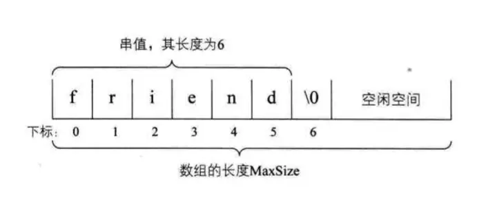 既然是定长数组,就存在一个预定义的最大串长度,一般可以将实际的串长度值保存在数组的0下标位置,有的语言加在数组最后: