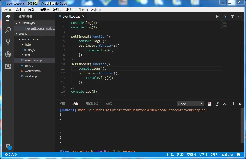 如果设置了setTimeout的时间,那就是按setTimeout的成功时间依次执行,如图:这里的顺序是1,2,5,4,7,3,6。也就是只要两个set时间不一样的时候 ,就set时间短的里面走完(包括set里面的回调函数),再走set时间慢的。如果两个set时间一样,就是按顺序走set,走完后再按顺序走set里面的回调。
