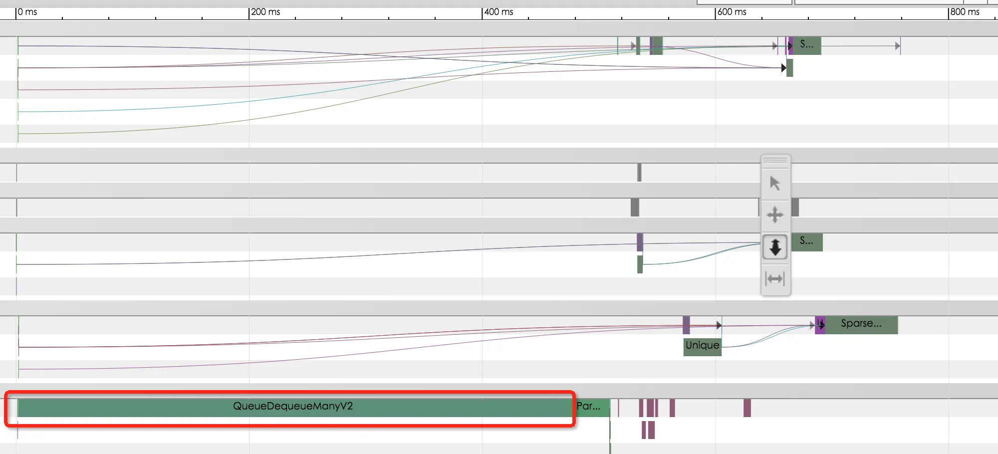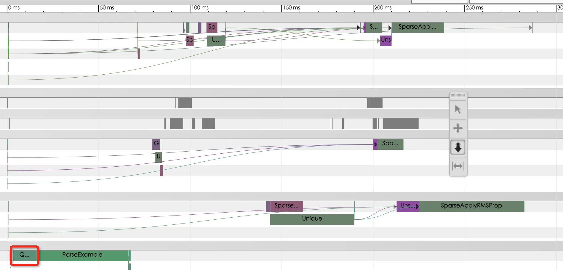 可以看到经过调优后,QueueDequeueManyV2耗时只有十几毫秒,每轮训练时延从原来的800多毫秒降低至不到300毫秒。