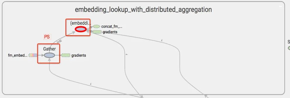 社区提供了一个接口方法正是按照这个思想实现的:embedding_lookup_sparse_with_distributed_aggregation接口,该接口可以将embedding计算的所使用的OP都放在变量所在的PS上,计算后转成稠密张量再传送到Worker上继续网络模型的计算。 从下图可以看到,embedding计算所涉及的OP都是在PS上,测试Worker的上行和下行网络流量也稳定在2-3Gpbs这一正常数值。