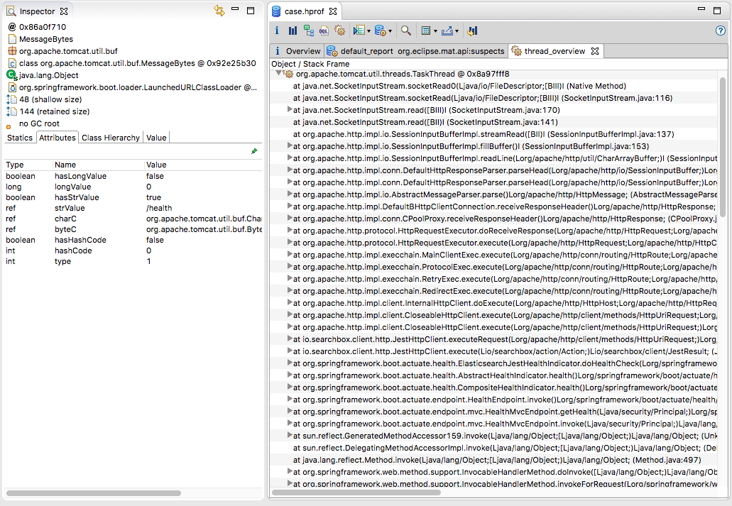 可以看到ElasticsearchJestHealthIndicator.doHealthCheck持有了很多对象没释放