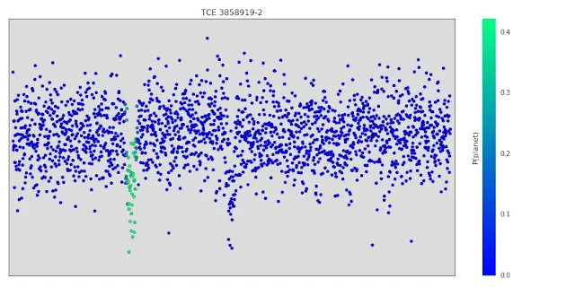 命令的输出为 prediction = 0.94,表示模型有 94% 的把握认为此信号是一颗真正的行星。当然,这只是系外行星整个发现和验证过程的一小步:模型的预测不能得出肯定结论。验证此信号是一颗真正的系外行星的过程需要一位专业的天文学家进行大量跟进工作 - 请参见我们论文的 6.3 和 6.4 小节了解完整详情。在这个特殊的情况下,我们的跟进分析验证此信号确实是一颗系外行星,这颗系外行星现在的名称为