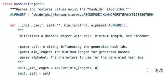 鉴于hashids是如此的小巧,笔者随后对它的源代码进行了一番研究。首先看看它的构造器